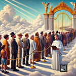 Մի անգամ երկնքի դարպասների մոտ հավաքվեցին մի քանի հարյուր հոգի, տղամարդ եւ կին, ովքեր այդ օրն էին մահացել: Սուրբ Պետրոսը, դրախտի դարպասների ապագա պահապանը, կարգավորում էր շարժումը:>>>