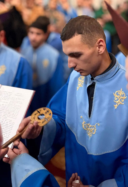 շապիկ են հագնում, կիսասարկավագի պաշտոն կատարում, երգում շարականներ