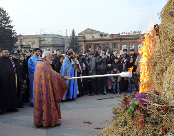 գալստյան նախատոնակը կատարում: Հեթանոսներն Աստծու պատիվը կրակին
